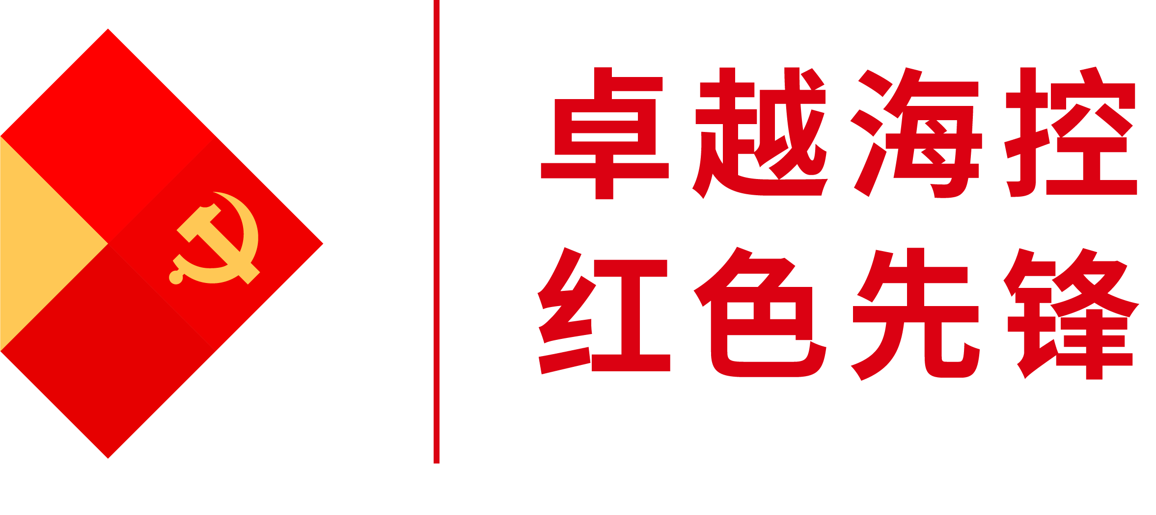 品牌標(biāo)識  以集團(tuán)標(biāo)識為底,以黨徽為主體,體現(xiàn)黨的領(lǐng)導(dǎo)和卓越海控特色;以紅色為主色,像一面旗幟,代表紅色先鋒;整體由各模塊組成,顏色鮮明,代表協(xié)同、創(chuàng)新、活力;金色模塊指向黨徽,代表一心向黨。