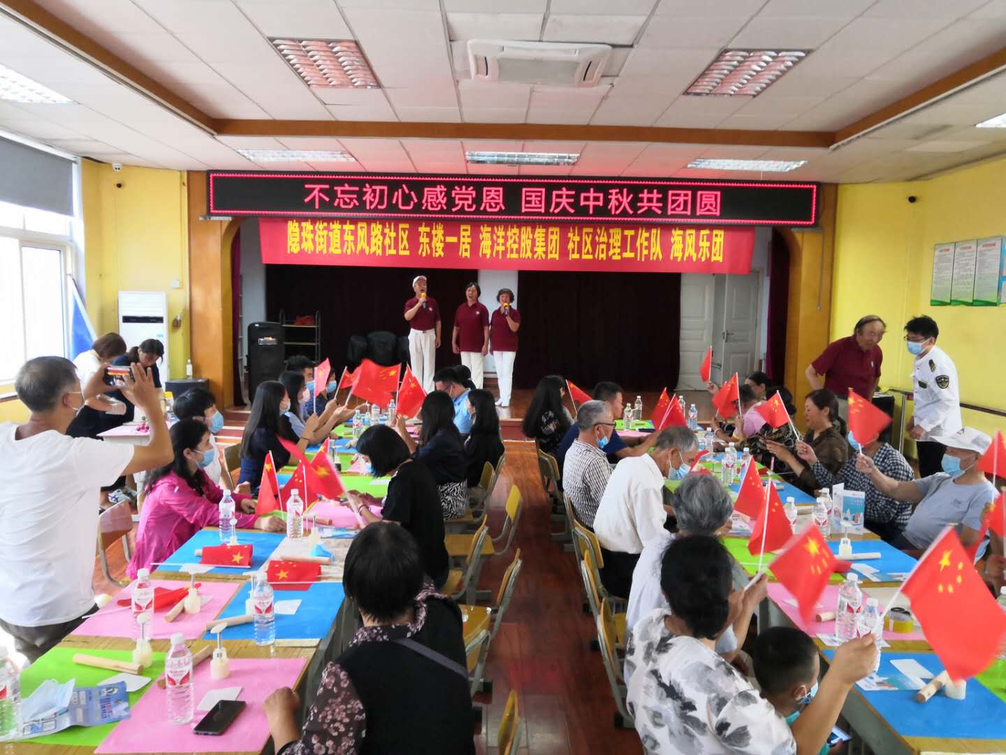活動首先以“紅歌會”開始,由社區老年人成立的“海風樂團”為大家唱起了《微山湖》《絨花》等紅色歌曲,瞬間將大家帶到了曾經的光榮歲月,感受到了濃濃的革命情懷,最后在“海風樂團”的帶領下,全體起立高聲唱起了《沒有共產黨就沒有新中國》,一起歌頌祖國感恩黨,唱響愛黨愛國愛社會主義的時代主旋律。