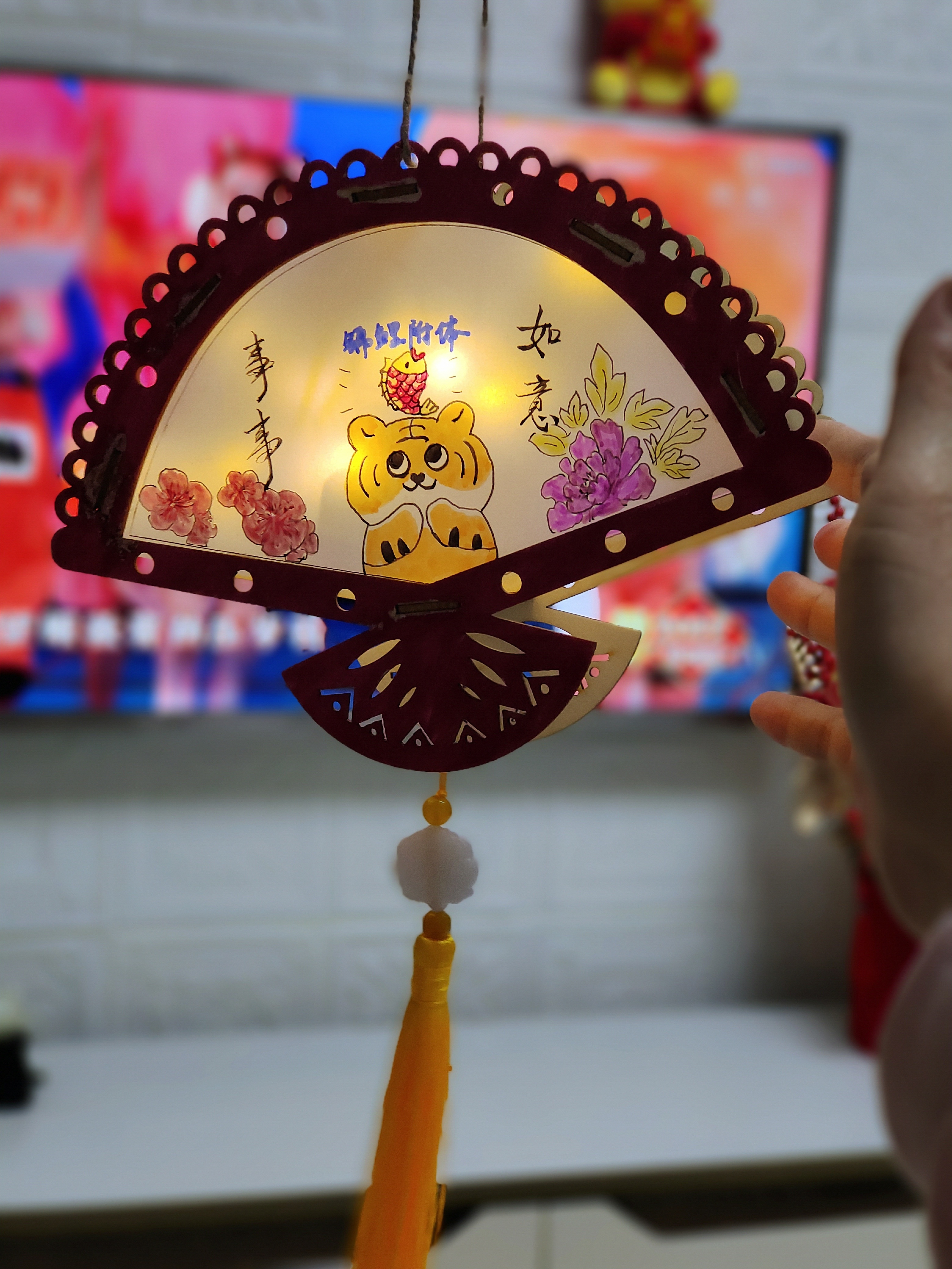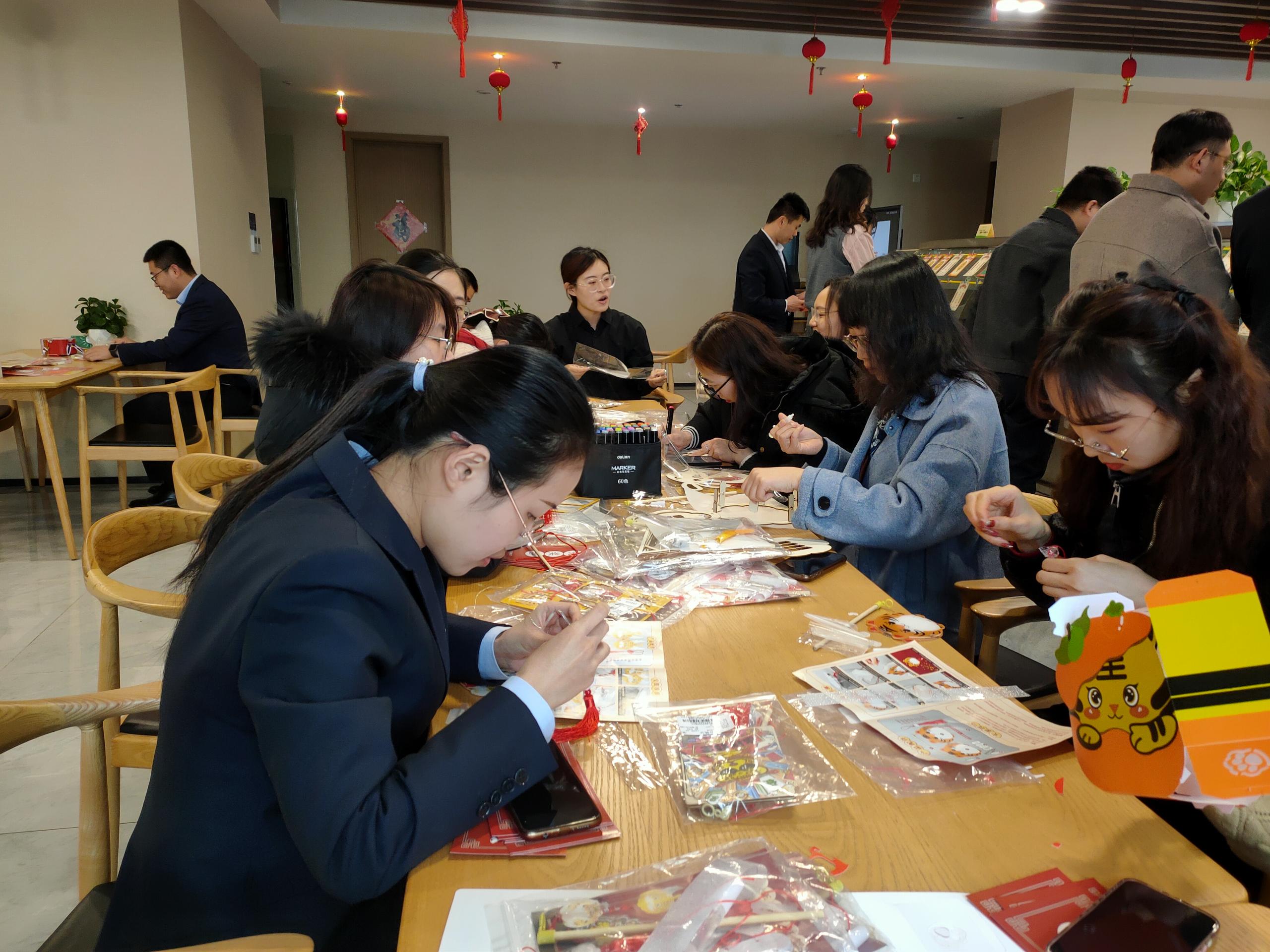 猜完燈謎,就到了大家最期待的做花燈環節。大家拿到材料包后,迫不及待地打開研究起來。集團的小哥哥小姐姐們小心翼翼修剪、鏤空好燈面,并仔細地將不同的燈面粘貼、拼接起來。最后給燈籠掛上流蘇,頂部裝好燈桿,內部插上彩燈后,一個精美的元宵燈就誕生了?!斑@是我親手做的燈籠,象征幸福、祥和,簡直太好看了!”做好燈籠的邵山成就感滿滿,興奮地和燈籠合影留念。