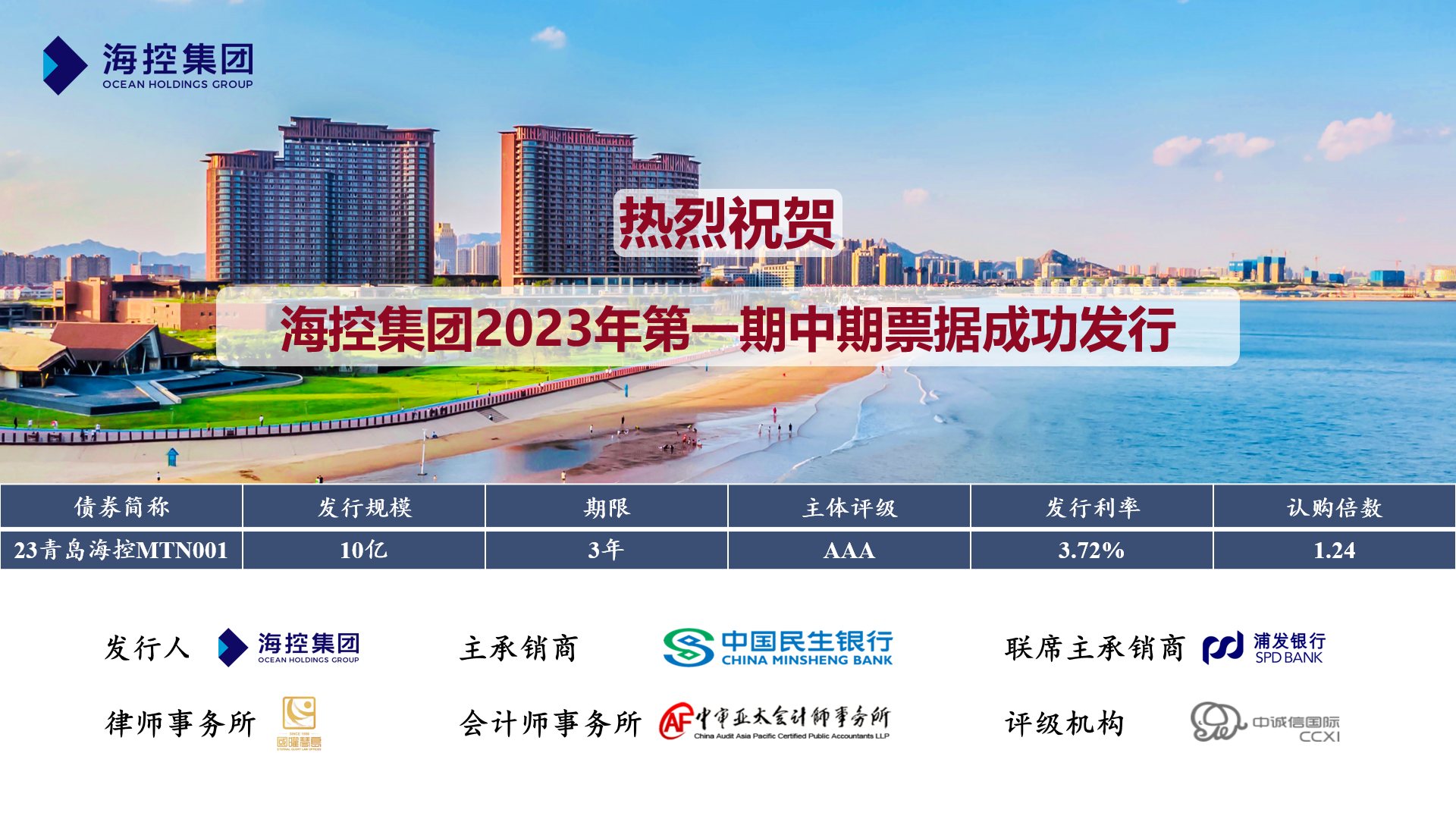 本次債券的成功發行,進一步增強了資本市場對西海岸新區和海控集團的投資信心,體現了資本市場對海控集團綜合實力和發展前景的認可。