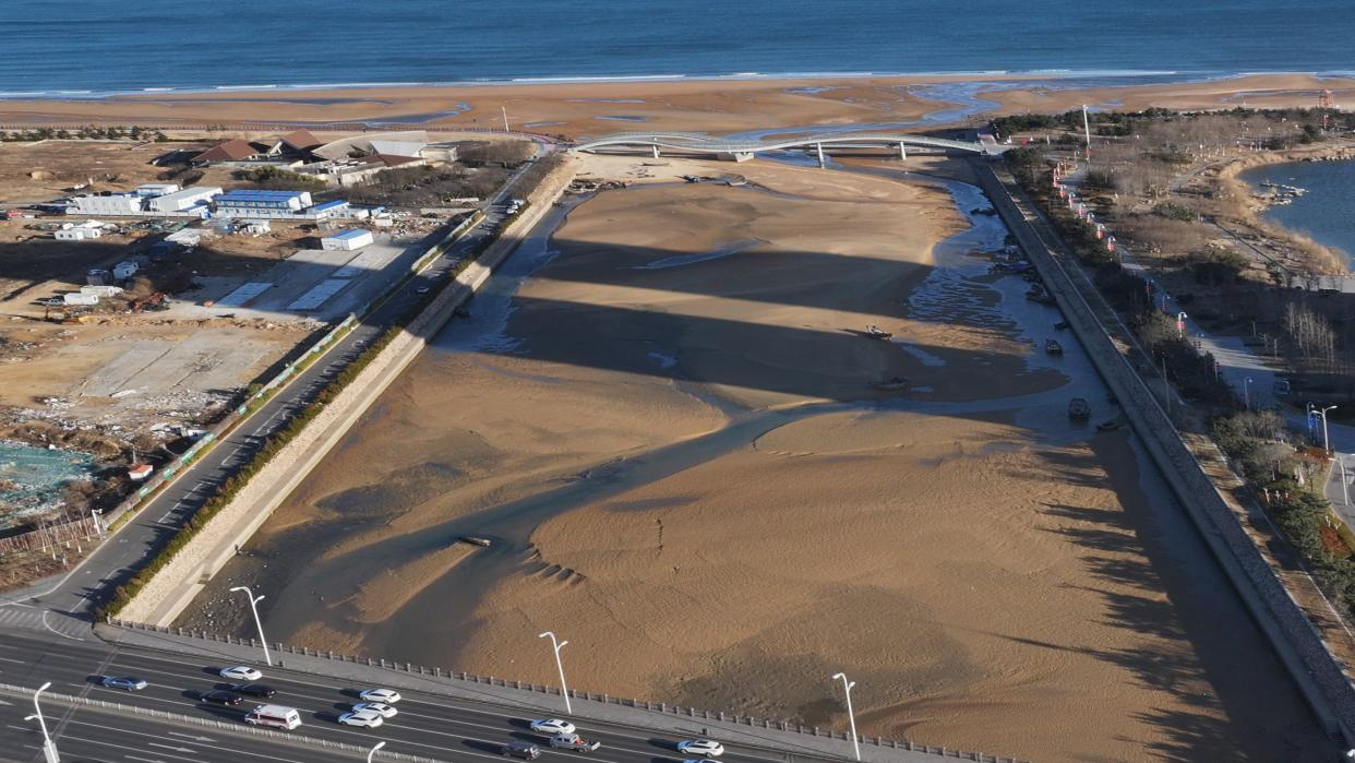 大盧河是西海岸新區(qū)一條重要的城市入海河流,海灘遼闊,常有漁船??俊O﹃栔?,在彩虹橋上遠眺靈山島,看漁船歸港,和家人一起趕海挖蛤蜊,是本地居民共同的美好生活回憶。